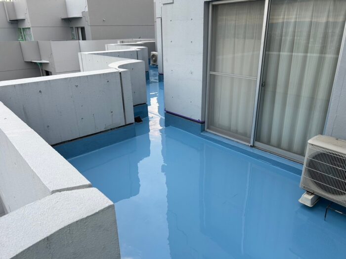 継ぎ目のない防水層を作ることができるため、柔軟性と密着性に優れ、複雑な形状の屋上やベランダにも対応しやすいという特長があります。